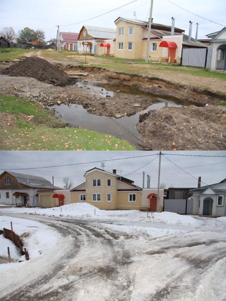 В начале сентября минувшего года в посёлке Виля на ул. Жданова (в районе домов №№ 6, 8, 10) проливные дожди размыли дорогу, вследствие чего она была полностью разрушена, а напротив домов образовалась промоина более 1 метра глубиной, 5 метров шириной и около 50 метров длиной. Из-за возникшего тогда коллапса по улице невозможно было проехать ни на каком виде транспорта. И что характерно, края образовавшегося оврага постепенно подмывались и осыпались, из-за чего яма с каждым днём становилась всё больше, представляя угрозу не только расположенным рядом домам, но и опорам линии электропередачи.