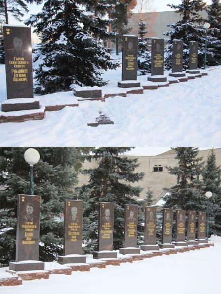 «Так как из-за погодных условий установить плиту на место не удалось, её убрали на хранение в ООО «Росток». До 23 февраля памятник вновь вернётся на прежнее место. Пока неизвестно, по какой причине он пострадал. Рассматривается версия о действиях вандалов. В этом году произошло уже несколько случаев вандализма: в парке продолжают разрушать сценическую площадку, ещё в январе сломали несколько лиственниц, а не так давно была разбита секция одного из остановочных павильонов. Просьба ко всем жителям города не оставаться равнодушными к действиям вандалов: по возможности пресекать их или сообщать в дежурную часть по телефону 8(83177) 3-12-02».