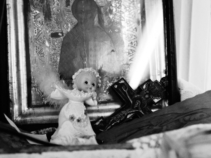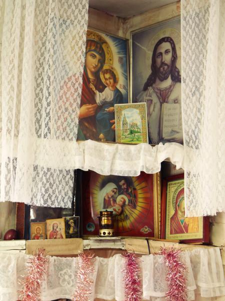 И как в каждой избе, в доме Прасковьи Николаевны есть красный угол с иконами. Живёт она одна, но с хозяйством справляется. Гостей любит. Главное её сокровище – чемоданчик с фотоснимками. Но показывает она не только их.