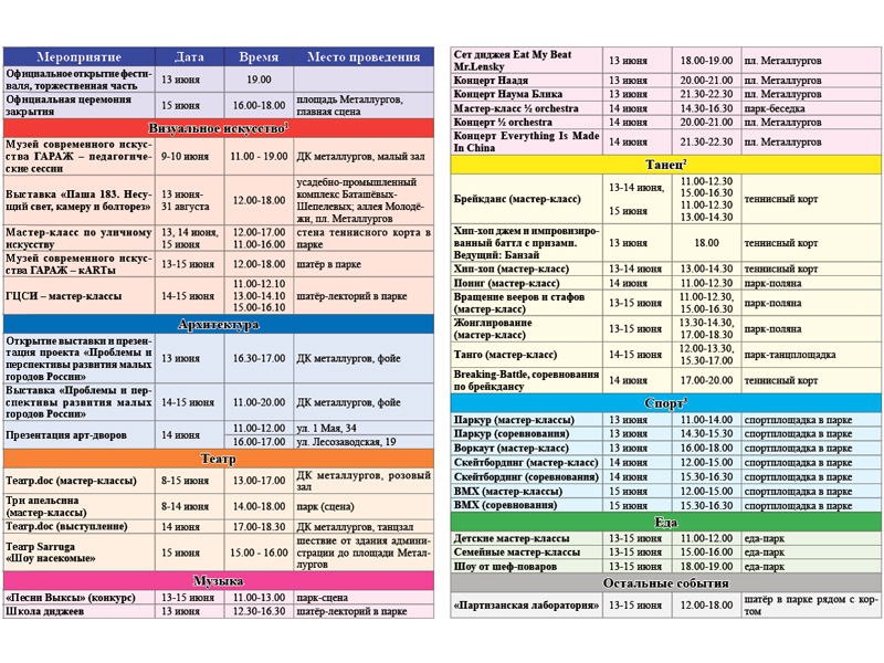В программу могут быть внесены изменения. Следите за новостями на официальном сайте artovrag-fest.ru.